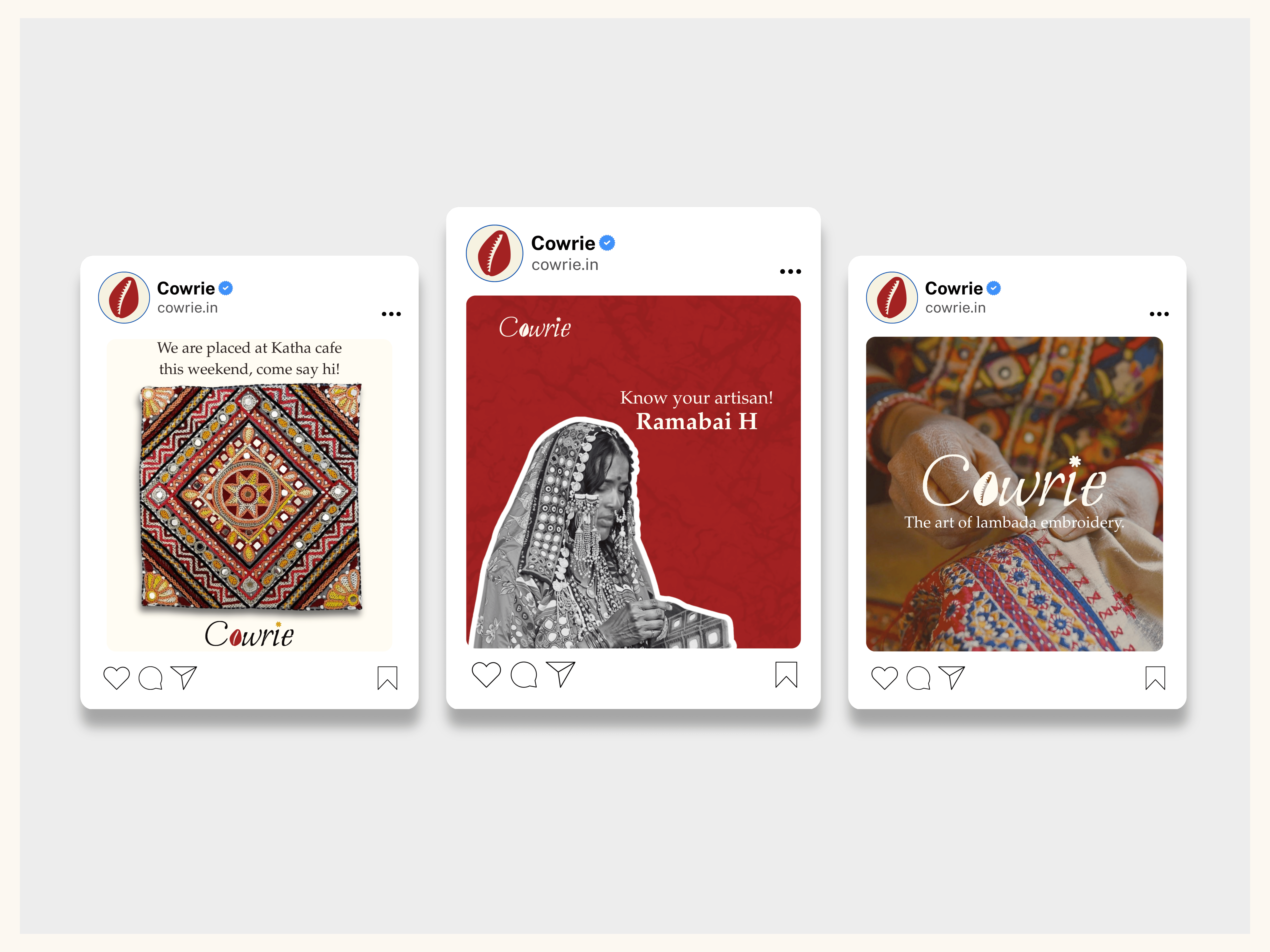 Cowrie is a cultural fashion brand identity inspired by the rich heritage of Lambada embroidery from Telangana. The project celebrates traditional craftsmanship while positioning it for a contemporary audience through a visual system that blends cultural symbolism, handcrafted authenticity, and modern design language.