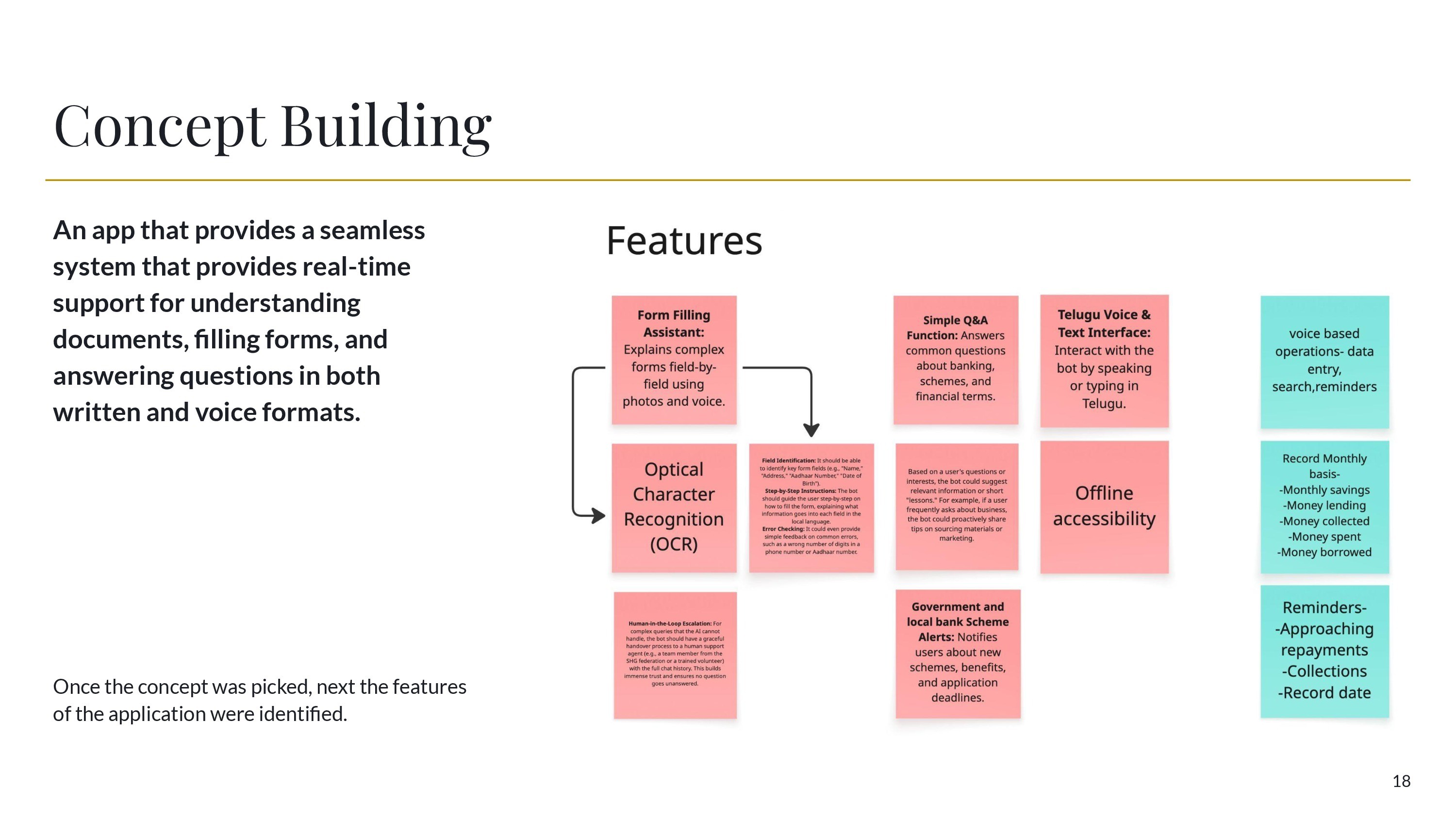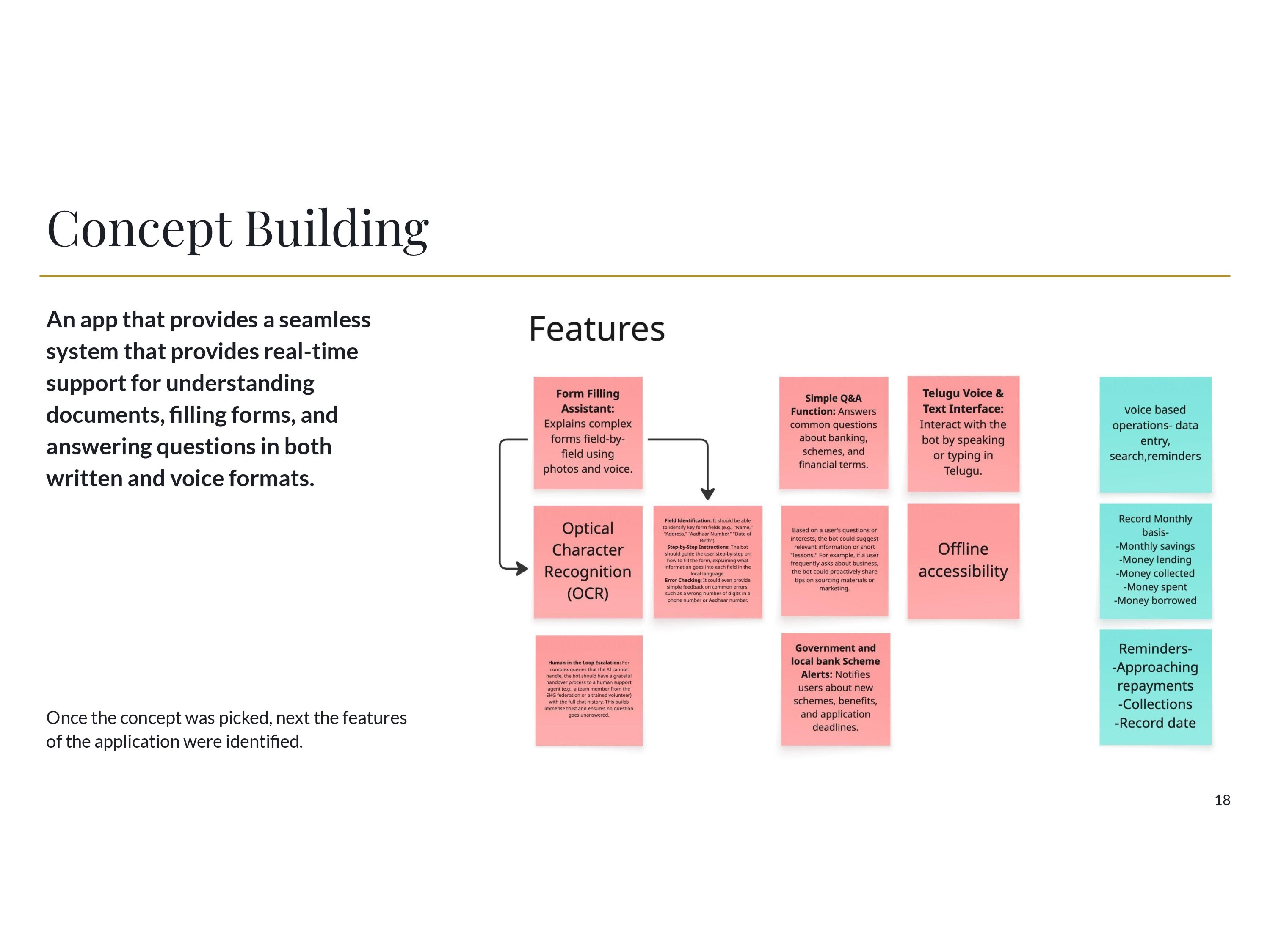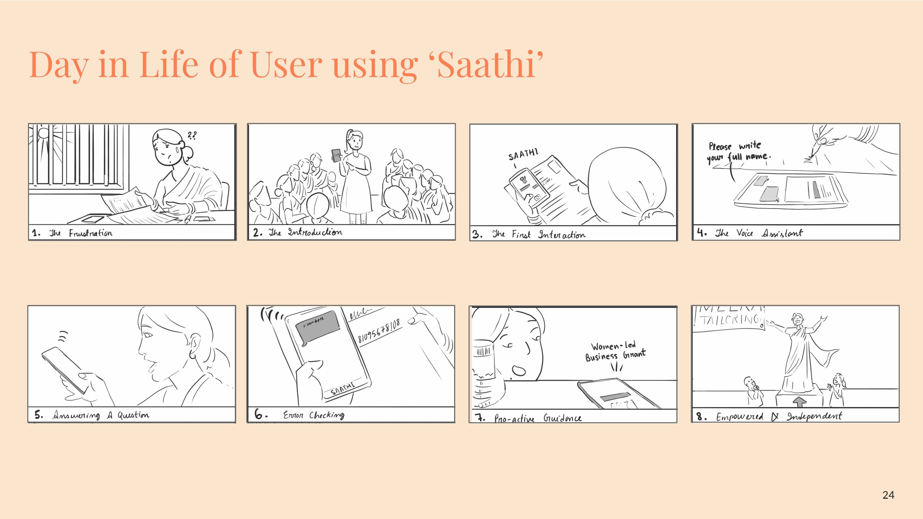 Through extensive user research, persona development, and iterative concept building, we designed Saathi, a voice-enabled AI assistant that helps women understand documents, fill forms, and access financial knowledge. The multilingual interface, OCR-based form assistance, and conversational guidance reduce dependency on intermediaries and empower users to navigate systems independently.